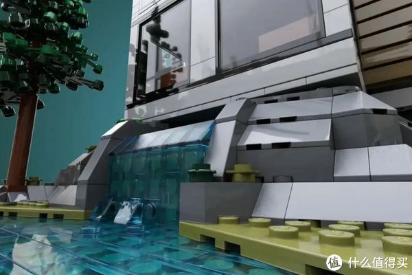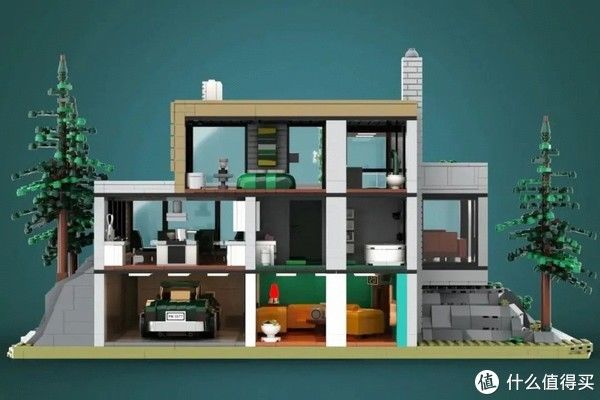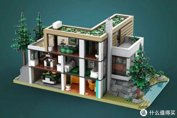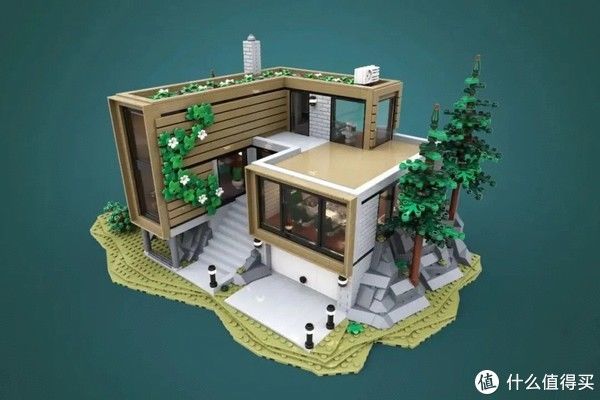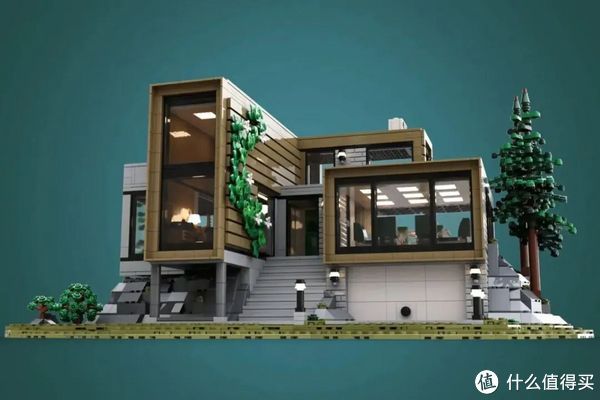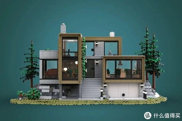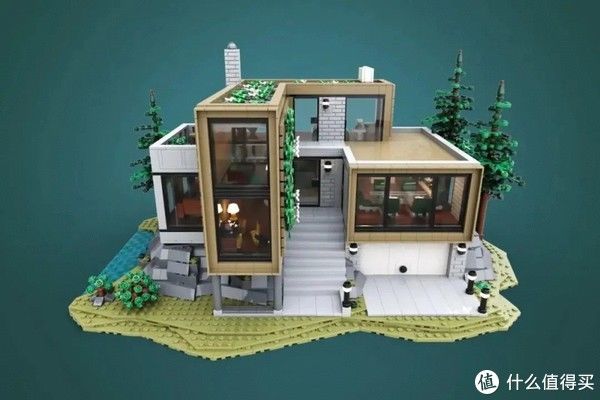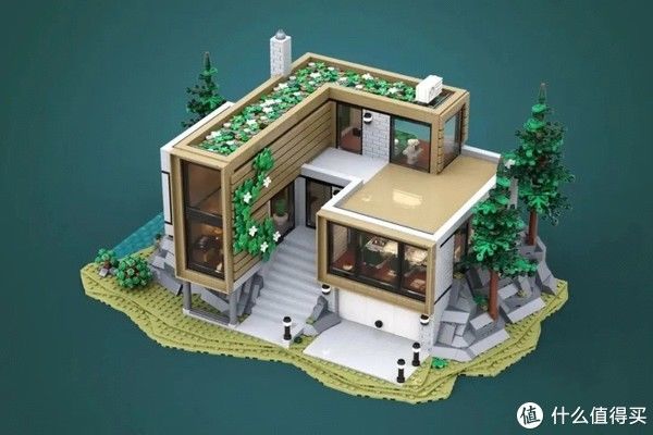 简洁优美的设计与周边自然的环境(当然也是乐高积木搭建的)完美融合,形成一个缺一不可的整体。沙盘上他则是设计了三颗高隆的松树,所以小编猜测,这是...北欧?